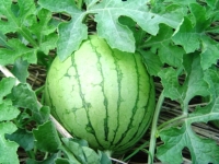 工場の前に小さな畑があって、そこでスイカを育てています。周囲と上辺を網で囲っていて、カラス・アライグマが侵入するのを防いでいます。ところが、4・5日前に網を破って中のスイカ7個を食べられてしまいました。そこで、役場より借りている檻に食べ物を入れて仕掛けておいたところ、朝にアライグマがかかっていました。弊店の周囲は田んぼで工場を含む周りをイノシシの進入を防ぐために電柵で囲っています。夜は電気を流していてもアライグマには効果はないようです。